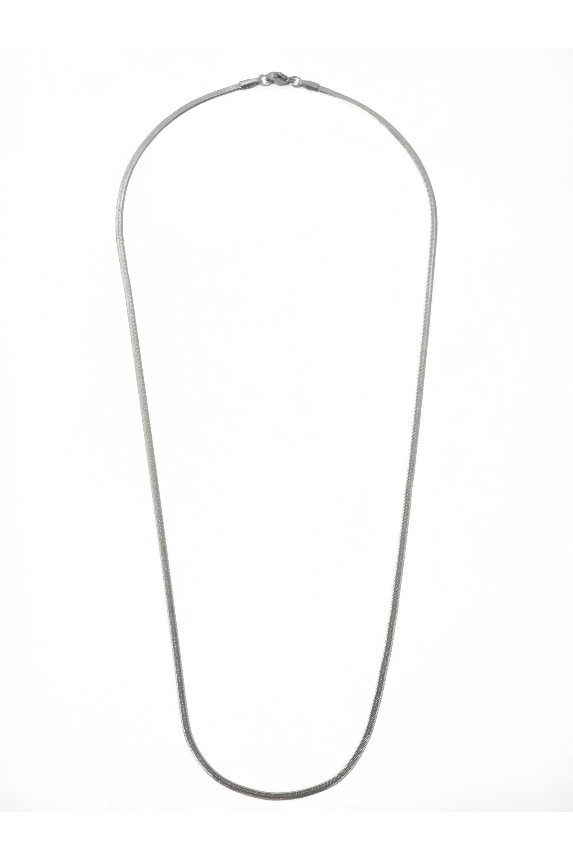 A subtle yet striking piece for any look. This anti-tarnish stainless steel necklace features a smooth, flexible snake chain design that drapes beautifully. Its sleek, polished finish is both modern and timeless, ensuring it won't lose its shine. Simple and refined, this piece is an effortless addition to any outfit, whether worn alone or layered with other chains.